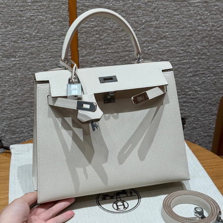 최고퀄 에르메스 올수공 켈리 25 Craie 엡송 가죽 은장