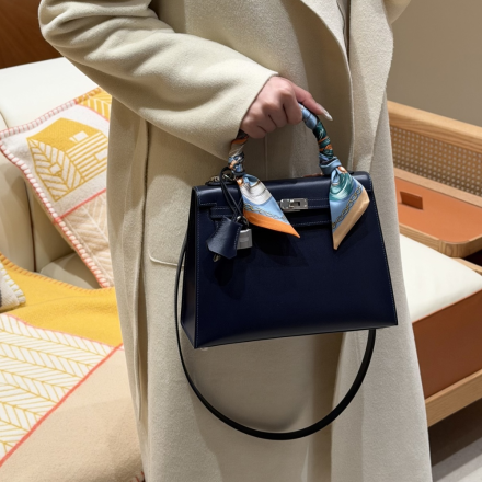 최고퀄 에르메스 올수공 켈리 25 블루 사파이어 박스 가죽 은장