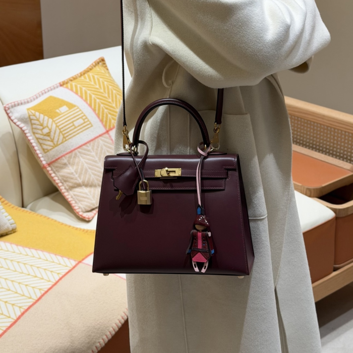 최고퀄 에르메스 올수공 켈리 25 Rouge Sellier 박스 가죽 금장 > 여성 가방