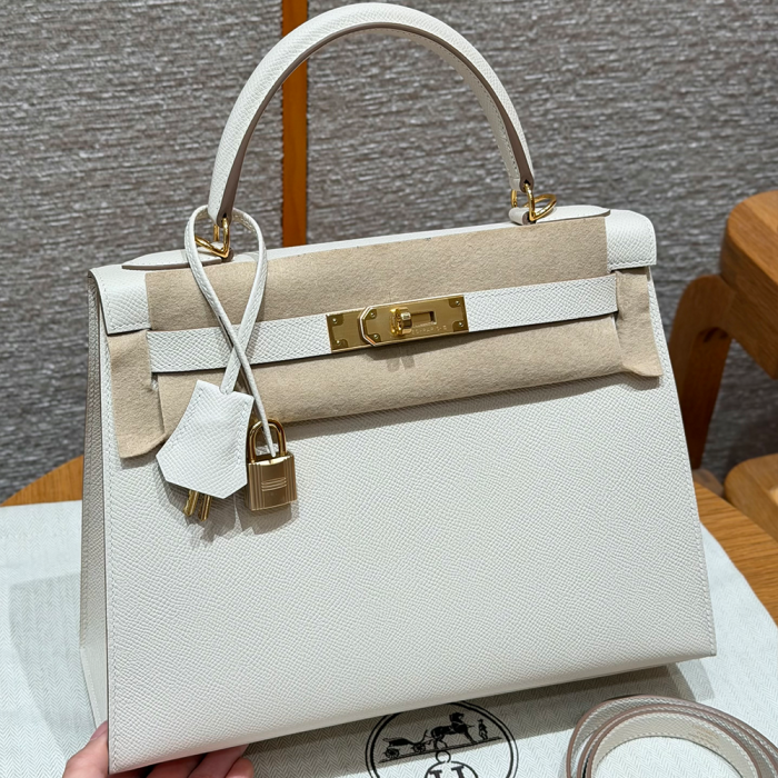 최고퀄 에르메스 올수공 켈리 28 Craie 엡송 가죽 금장 > 여성 가방