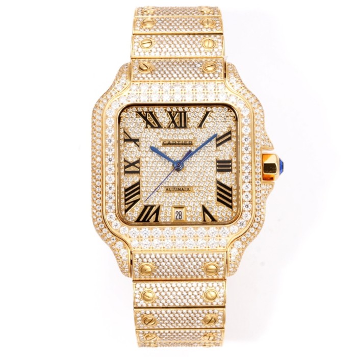 최고퀄 까르띠에 산토스 로마 다이얼 옐로우 골드 파베 세팅 40mm > 남성 시계
