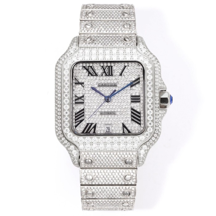 최고퀄 까르띠에 산토스 로만 다이얼 화이트 골드 파베 세팅 40mm > 남성 시계