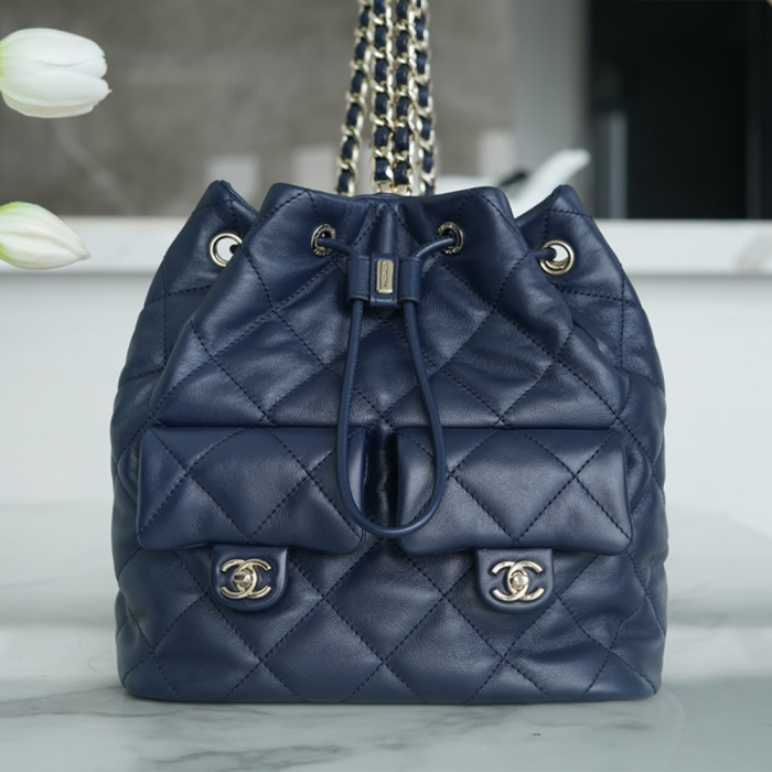 최고퀄 팬더샵 샤넬 투포켓 드로우스트링 백팩 카프스킨 네이비 AS4342 > 여성 가방