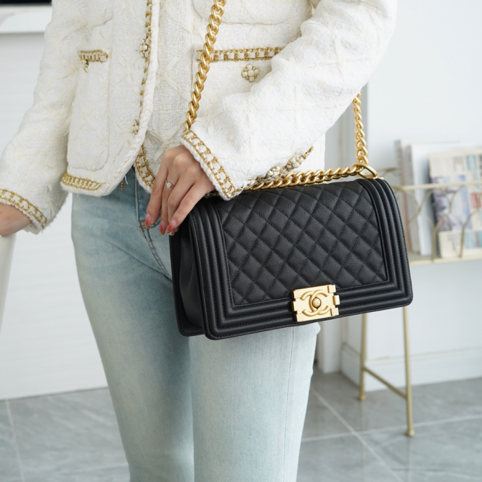 • 최고퀄 팬더샵 샤넬 보이 샤넬 미듐 플랩백 블랙 금장